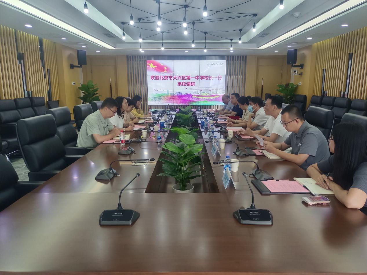 9月10日上午,北京市大兴区第一中学书记兼校长刘娜、集团副校长田媛一行来校走访调研。学校党委常委、副院长刘益,国资处、校产办、招生办公室、校办企业等相关人员参加座谈,会议由国资处处长、校产办主任齐英群主持。